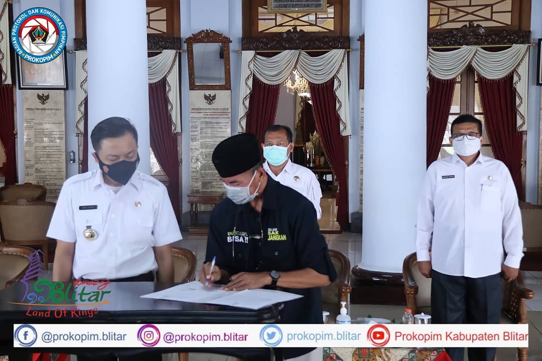 Wakil Bupati Blitar H. Rahmat Santoso didampingi Plt. Asisten Pemerintahan dan Kesra, Kepala Dispenduk Capil, dan Kepala Bagian Prokopim mengikuti acara Perjanjian Kerjasama Layanan Adminduk “Salam Sak Jangkah” di Pendopo Ronggo Hadinegoro. Rabu. 14/7/2021 Kepala Dispendukcapil Luhur Sejati melaporkan sampai saat ini ada 150 Desa/Kelurahan di 12 Kecamatan di Kabupaten …