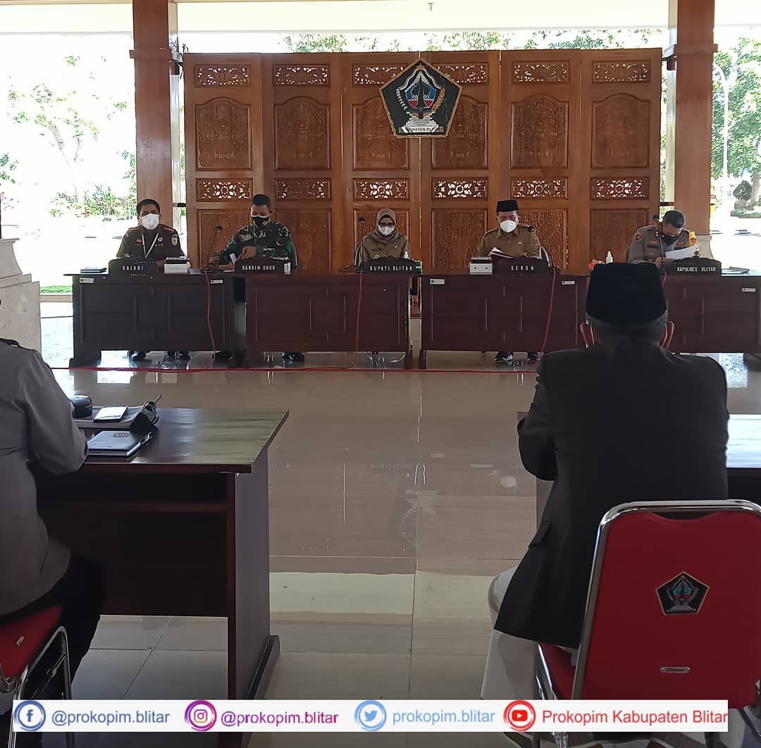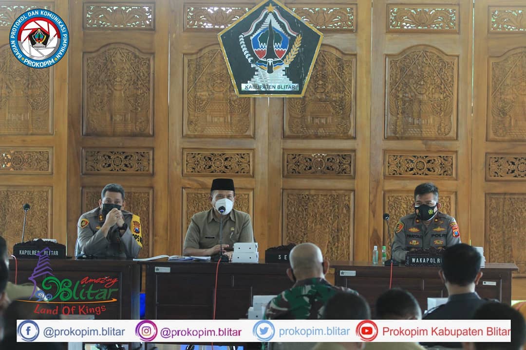 Pemerintah Kabupaten Blitar menggelar rapat koordinasi penanganan dan penanggulangan Covid – 19 di Pendopo Sasana Adi Praja Kanigoro. Rakor penanganan Covid – 19 ini dipimpin oleh Sekretaris Daerah Kabupaten Blitar Drs. Izul Marom, M.Sc bersama dengan Kapolres Blitar, Wakapolres Blitar Kota, Kodim 0808, Asisten 3, Plt. Kepala Dinas Kesehatan Kabupaten …