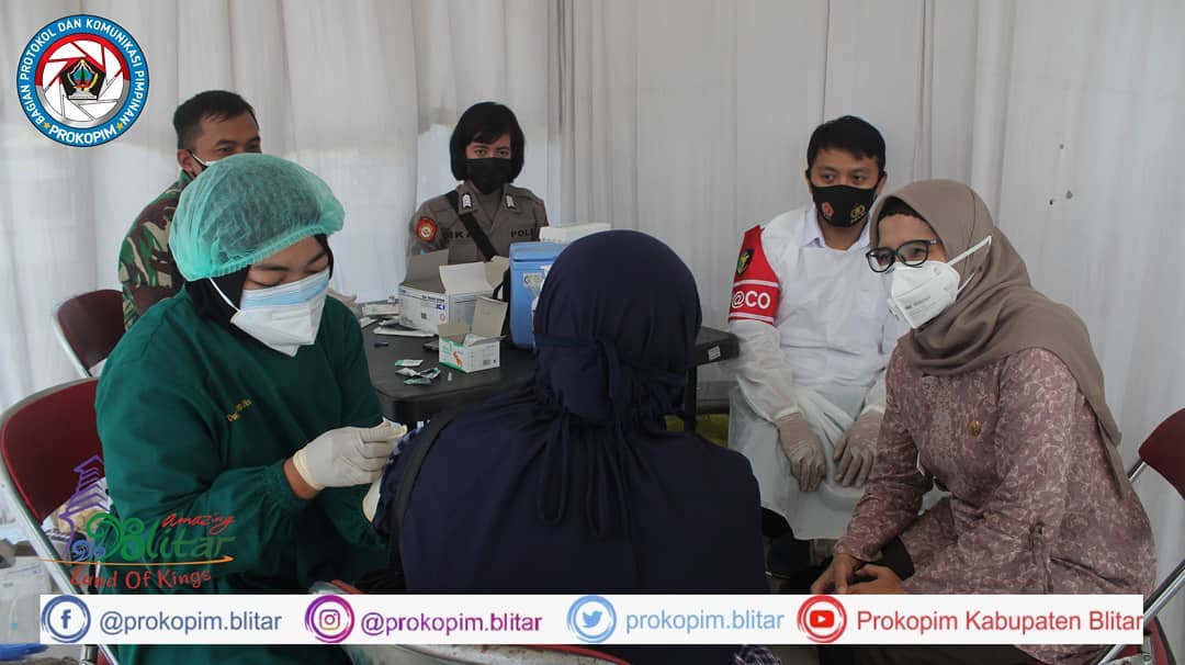 Bupati Blitar Hj. Rini Syarifah didampingi Sekda Kabupaten Blitar, Plt. Asisten Pemerintahan dan Kesra, Plt. Kepala Dinas Kesehatan, Kepala BPBD menghadiri kegiatan Serbuan Vaksinasi Nasional TNI – Polri Sehari Satu Juta Orang serentak di 34 Wilayah Polda seluruh Indonesia dalam rangka Hari Bhayangkara ke – 75 Tahun 2021. Turut hadir …