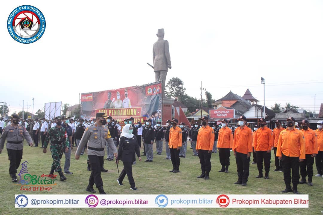Bupati Blitar Hj. Rini Syarifah mengikuti Apel Gabungan Pengamanan Malam Takbir Idul Fitri 1442 H bersama Tokoh Agama, Kapolres Blitar, Pgs. Dandim 0808, Danyon 511, Kepala Pengadilan Negeri Blitar, beserta Kepala OPD dan Muspika se-Kabupaten Blitar dan di Alun – Alun Kanigoro Pemkab Blitar. Apel gabungan diterima oleh Kapolres Blitar …