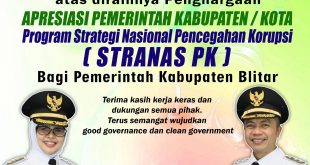 Selamat dan Sukses atas diraihnya Penghargaan Apresiasi Pemerintah/ Kota Program Strategi Nasional Pencegahan Korupsi (STRANAS PK) bagi Pemerintah Kabupaten Blitar