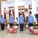 Puncak kegiatan Hari Ulang Tahun Korps Pegawai Republik Indonesia (Korpri) Ke-49 Tahun 2020, Ketua Dewan Pengurus Korpri Kabupaten Blitar, Drs. Totok Subihandono, M.Si membuka Webinar tentang Motivasi bagi ASN Senin (30/11/2020) di Pendopo RHN.