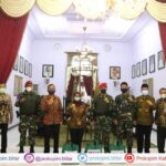 Bupati Blitar didampingi Pj. Sekda, Plt. Asisten Pemerintahan dan Kesra, Kepala Bakesbangpol, Kabag Perekonomian dan Camat Wlingi menerima kunjungan dari anggota Kopassus TNI AD di Pendopo Ronggo Hadinegoro. 27/5/2021