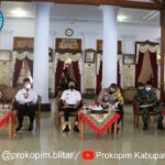 Wakil Bupati Blitar H. Rahmat Santoso bersama Kapolres Blitar AKBP Leonard M.Sinambela, S.H.S.IK, MH , Wakapolres Blitar Kota Kompol Pratolo Saktiawan, S.H., M.H , Kasdim 0808 Mayor lnf. Leo Eustatius Paurakan , Sekretaris Daerah Drs. Izul Marom, M.sc , Plt. Kepala Dinas Kesehatan Miftakhul Huda , dan beberapa OPD mengadakan ANEV Covid-19 dengan seluruh Camat , terkait Penanganan Covid-19 di Kabupaten Blitar yang dalam beberapa hari ini mengalami penambahan kasus yang signifikan. Pendopo Ronggo Hadinegoro, Rabu/14 Juli 2021.