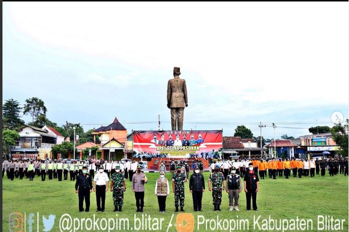 Untuk mengamankan pergantian tahun, sejumlah personil dari unsur TNI, Polri, Satpol PP, Dishub, BPBD dan Dinkes disiagakan. Bupati Blitar, Hj. Rini Syarifah menghadiri apel gelar pasukan yang digelar pada Juma, 31 Desember 2021 di Alun-alun Kanigoro ini.