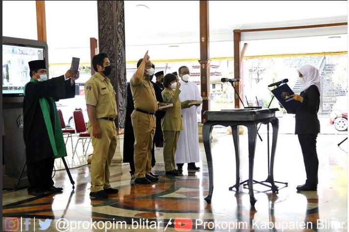 Bupati Blitar, Hj. Rini Syarifah melantik dan mengambil sumpah/janji 317 pejabat fungsional di Lingkungan Pemerintah Kabupaten Blitar. Pengangkatan jabatan fungsional melalui mekanisme penyetaraan ini digelar di Pendopo Ronggo Hadinegoro pada Jumat 31 Desember 2021.