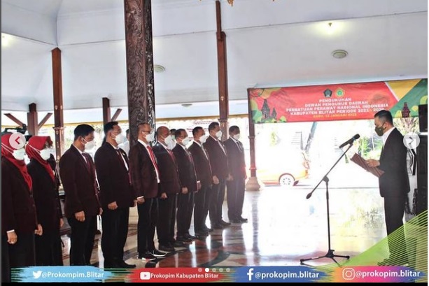 Wakil Bupati H. Rahmat Santoso mengukuhkan dan melantik perawat yang tergabung dalam DPD PPNI (Persatuan Perawat Nasional Indonesia) Kabupaten Blitar , sekaligus membuka Webinar Keperawatan DPD PPNI di Pendopo Ronggo Hadinegoro. (Rabu, 12 Januari 2022)