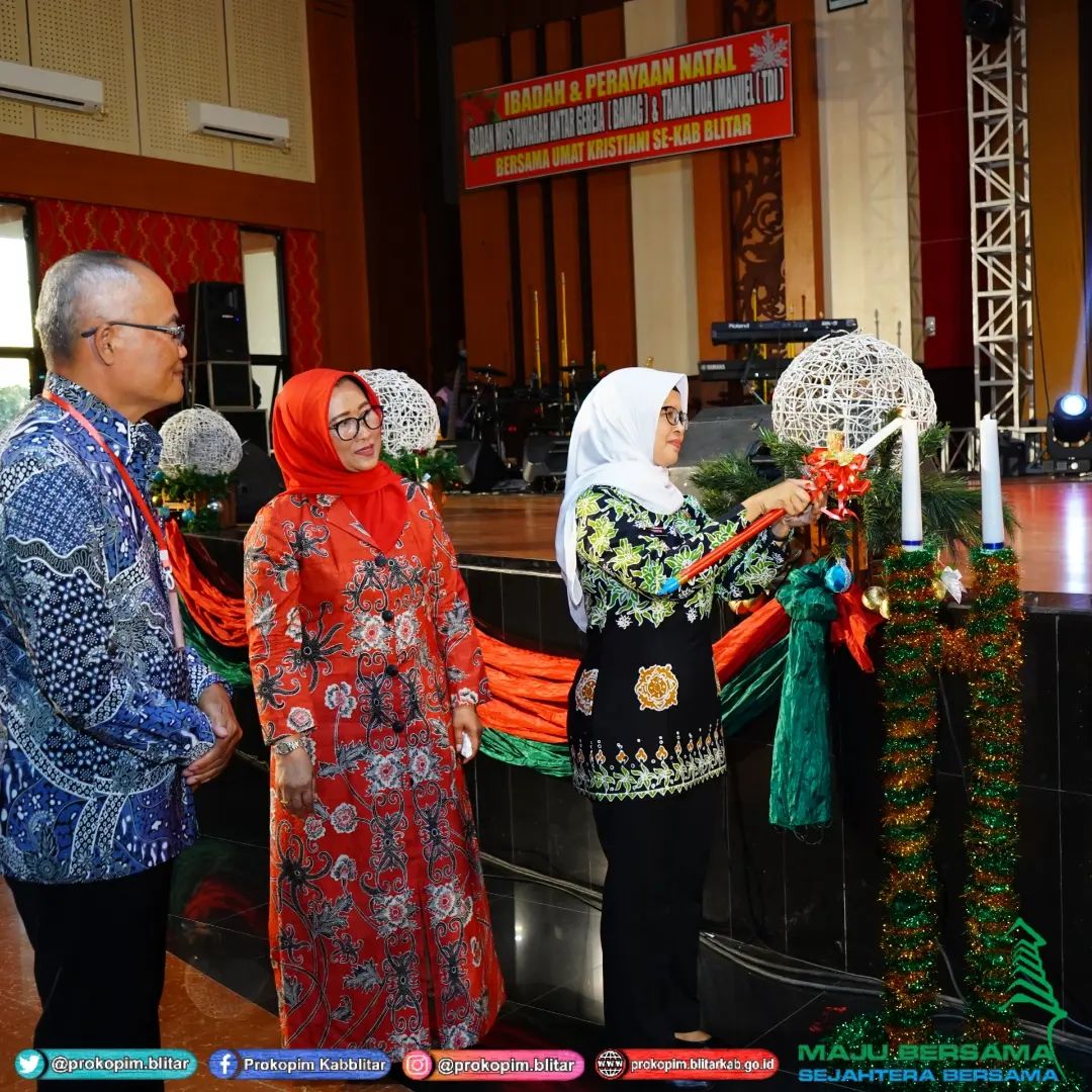 Bupati Blitar Hj. Rini Syarifah menghadiri Perayaan Natal Tahun 2022 bersama Badan Musyawarah Antar Gereja (BAMAG). Acara tersebut diselenggarakan di Gedung Kesenian Aryo Kota Blitar pada hari Rabu 11 Januari 2023. Acara ini diikuti oleh umat Kristiani se-Kabupaten Blitar.