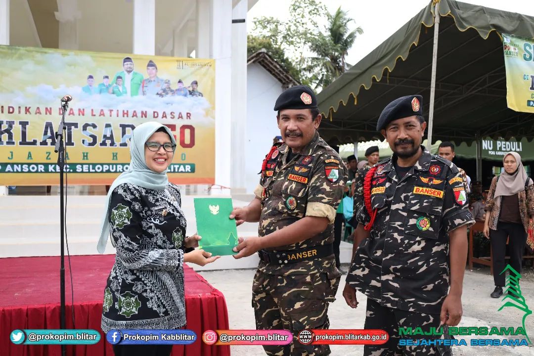 Bupati Blitar Hj. Rini Syarifah didampingi Kepala Bagian Kesra Setda Blitar membuka Pendidikan dan Latihan Dasar (Diklatsar) ke 50 & Ijazah Kubro Banser Kabupaten Blitar bertempat di Dusun Wonorejo Desa Jambewangi Kecamatan Selopuro pada Jumat, 13 Januari 2023.