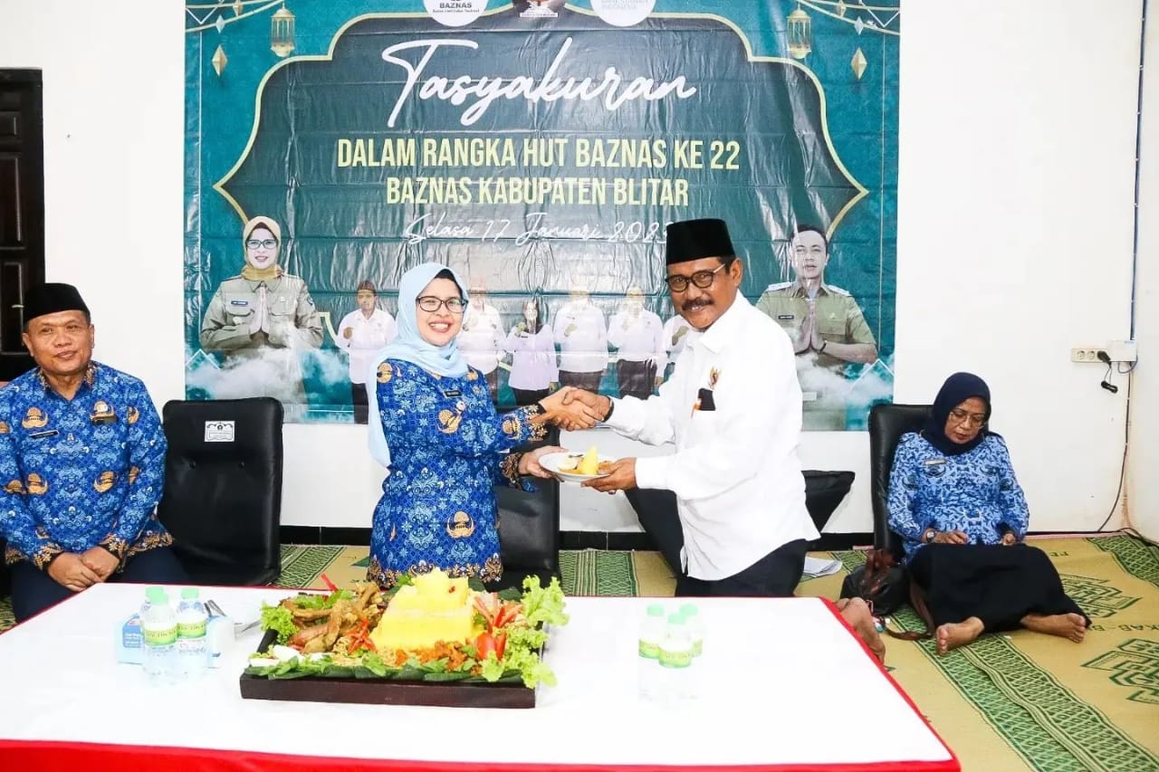 Bupati Blitar, Hj. Rini Syarifah mengapresiasi kinerja Badan Amil Zakat Nasional (Baznas) Kabupaten Blitar. Hal ini disampaikan dalam kegiatan Tasyakuran Hari Ulang Tahun Ke-22 Baznas di Wisma Muradi pada Selasa, 17 Januari 2023.