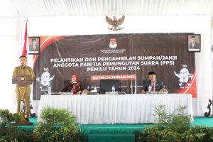 Wakil Bupati Blitar, H. Rahmat Santoso, SH., MH. menghadiri pelantikan Panitia Pemungutan Suara (PPS) se-Kabupaten Blitar. Kegiatan imi digelar di Pendopo Sasana Adhi Praja pada Selasa, 24 Januari 2023.