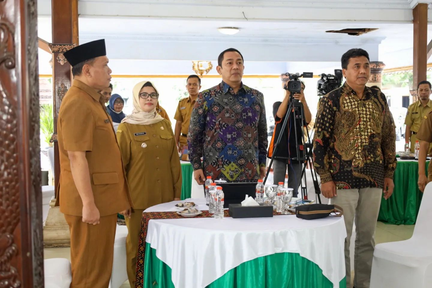 Bupati Blitar, Hj. Rini Syarifah mendampingi Kepala Lembaga Kebijakan Pengadaan Barang/Jasa Pemerintah (LKPP), Dr. H. Hendrar Prihadi, S.E., M.M membuka Focus Group Discussion dengan tema Katalog Elektronik Lokal di Kabupaten Blitar. Kegiatan ini digelar di Pendopo Ronggo Hadinegoro pada Selasa, 14 Februari 2023.