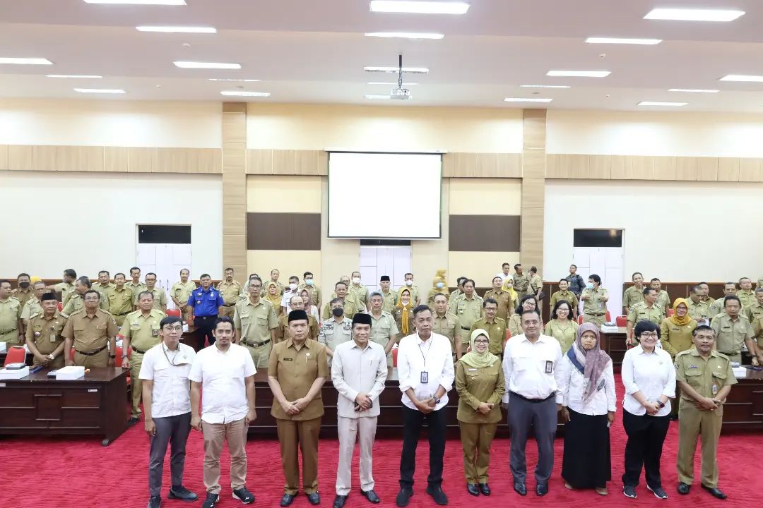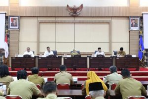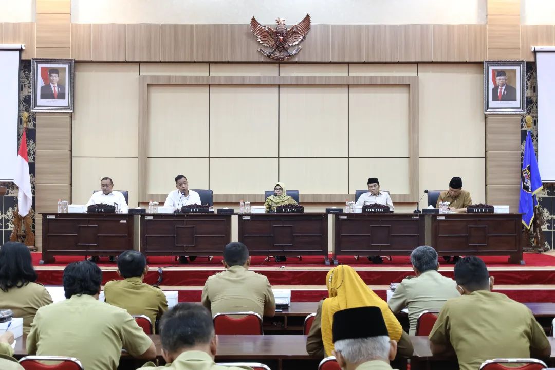 Bupati Blitar Hj. Rini Syarifah didampingi Ketua DPRD Kabupaten Blitar Suwito, Sekretaris Daerah Drs. Izul Marom, M.Sc menerima kunjungan kerja Kepala Perwakilan BPK Jawa Timur di Aula Penatara Kantor Bupati Blitar di Kanigoro pada Senin, 13 Februari 2023. Hadir pada acara ini Asisten, Staf Ahli Bupati, Kepala OPD dan Camat se-Kabupaten Blitar.