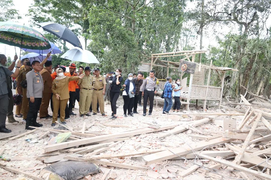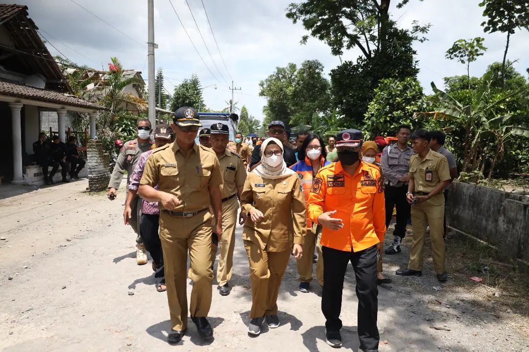 Bupati Blitar Hj. Rini Syarifah meninjau langsung lokasi musibah meledaknya bubuk petasan di Desa Karangbendo Kecamatan Ponggok pada Senin, 20 Februari 2023. Turut mendampingi Bupati Blitar ada Kapolres Blitar Kota, Dandim 0808/Blitar, Sekda Kabupaten Blitar dan OPD terkait.