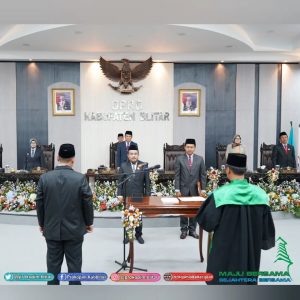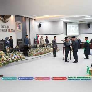 Bupati Blitar Hj. Rini Syarifah bersama Pejabat di Lingkungan Pemerintah Daerah , menghadiri Rapat Paripurna DPRD Kabupaten Blitar, Dalam Rangka Pengambilan Sumpah Janji Pengganti Antar Waktu (PAW) Anggota DPRD Kabupaten Blitar Sisa Masa Jabatan 2019-2024, di Gedung Graha Paripurna DPRD Kabupaten Blitar pada hari Jumat 24 Februari 2023.