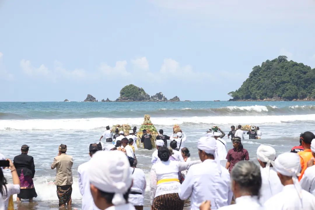 Bupati Blitar Hj. Rini Syarifah menghadiri acara Melasti yang diselenggarakan pada Selasa, 14 April 2023 bertempat di Pantai Jolosutro Kecamatan Wates. Upacara Melasti ini merupakan ritual penyucian diri, sebagai salah satu rangkaian ibadah agama Hindu dalam menyambut datangnya Hari Raya Nyepi.