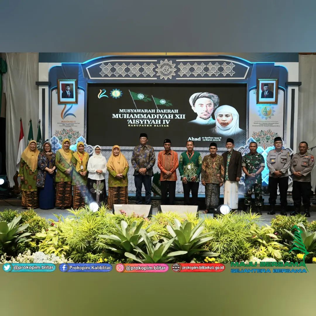 Bupati Blitar Hj. Rini Syarifah menghadiri Musyda Muhammadiyah XII ‘Aisyiyah IV Kabupaten Blitar di Unisba Kota Blitar , pad hari Minggu 19 Maret 2023. Turut hadir PWM Jawa Timur Dr. Ir. Moch. Sasmito Djati dan Pimpinan Wilayah ‘Aisyiyah Jawa Timur Dra. Hj. Rukmini Amar, MAp