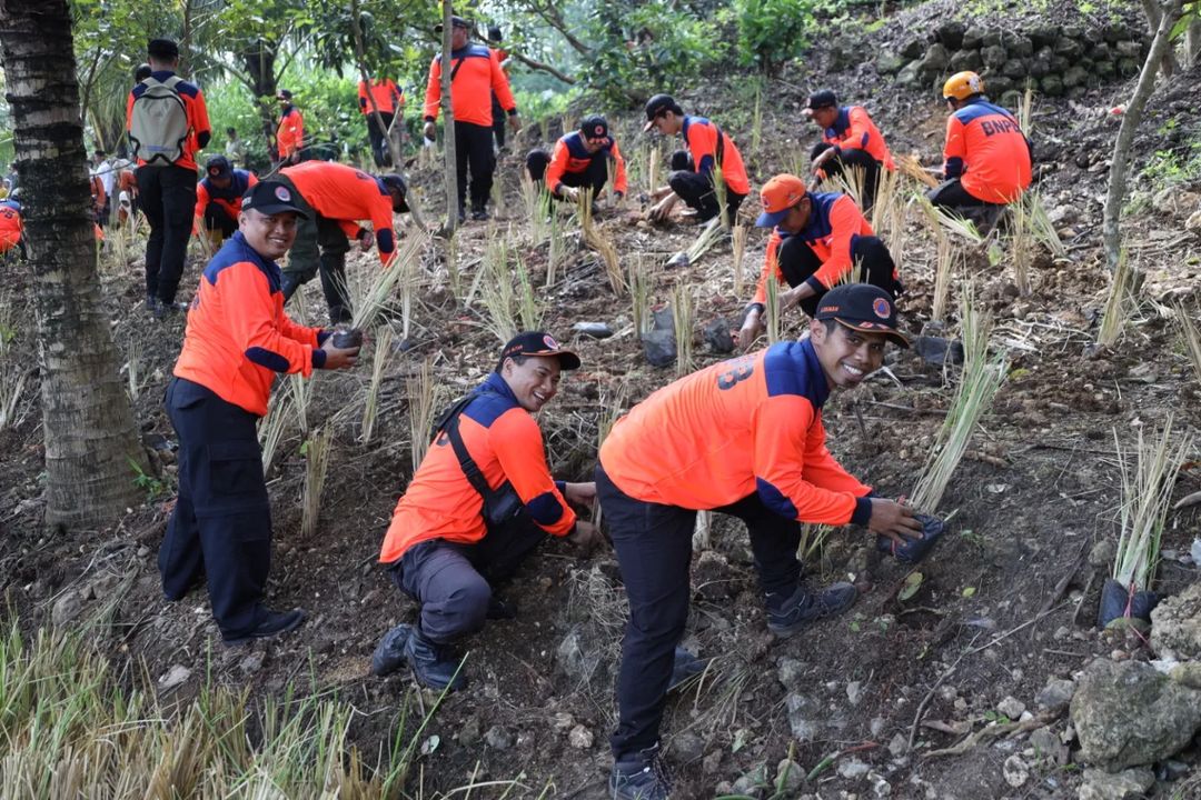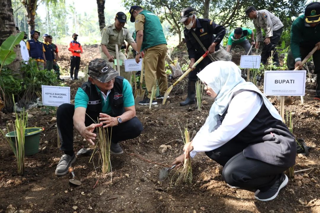 Bupati Blitar, Hj. Rini Syarifah memimpin langsung penanaman rumput vetiver dalam rangka mitigasi bencana tanah gerak. Kegiatan ini digelar di Desa Binangun pada Senin, 20 Maret 2023.