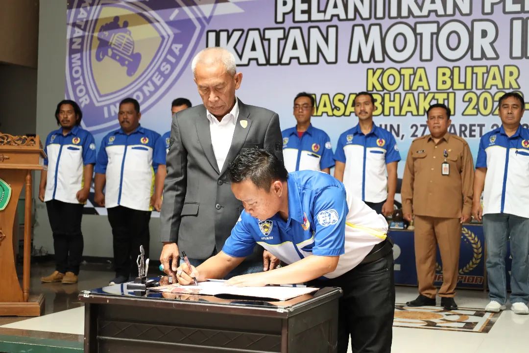 Wakil Bupati Blitar H. Rahmat Santoso menghadiri Pelantikan Pengurus Ikatan Motor Indonesia (IMI) Kota Blitar Masa Bhakti 2023 – 2025 yang diselenggarakan di Aula UNISBA Kota Blitar pada Senin, 27 Maret 2023. Pelantikan ini dihadiri oleh Asisten II Kota Blitar, Kasdim 0808, Perwakilan Polres Blitar Kota, Ketua KONI Kota Blitar, Ketua IMI Jawa Timur dan para pecinta club motor yang tergabung dalam IMI.
