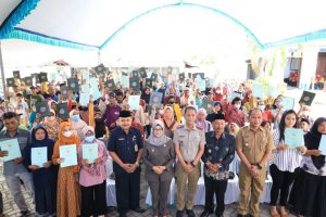 Bupati Blitar menyerahkan Sertifikat hasil program redistribusi tanah objek landreform kepada masyarakat Desa Sidodadi dan Karangrejo Kecamatan Garum. Kegiatan ini dilaksanakan pada Selasa, 4 April 2023.