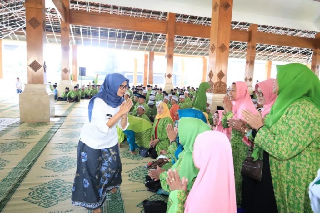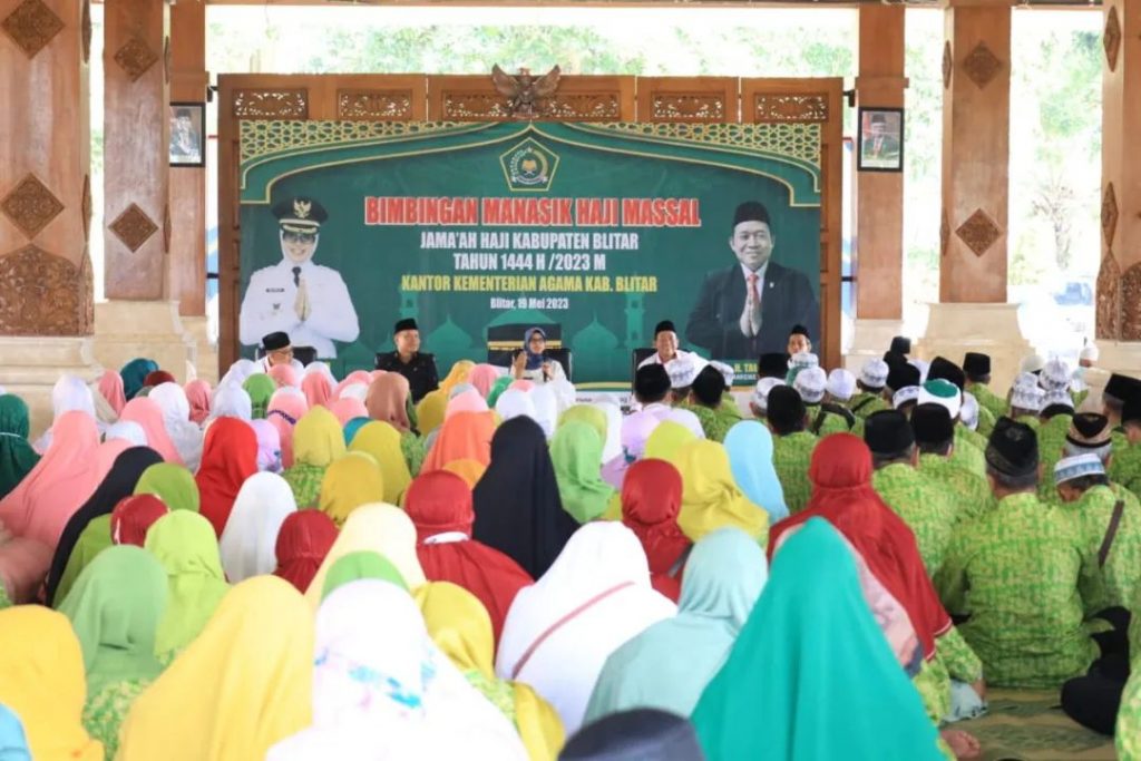 Bupati Blitar, Hj. Rini Syarifah menyapa ratusan Calon Jamaah Haji yang akan berangkat tahun ini. Kegiatan dalam rangka bimbingan manasik untuk jamaah haji 1444 H ini digelar di Pendopo Sasana Adi Praja pada Jumat 19 Mei 2023. Dalam kesempatan ini Bupati meminta agar para calon jamaah menjaga kesehatan dan stamina selama menjalankan ibadah haji. Pihaknya juga berpesan untuk disiplin mentaati arahan pendamping.