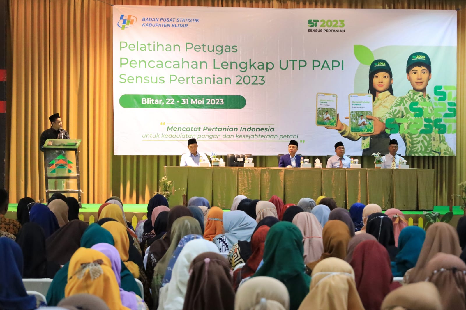 Wakil Bupati Blitar H. Rahmat Santoso membuka Pelatihan Petugas Pencacahan Lengkap UTP PAPI Sensus Pertanian 2023 yang dilaksanakan pada tanggal 22 s.d 31 Mei 2023 di Hall Puri Perdana Hotel yang diselenggarakan oleh BPS Kabupaten Blitar. Tema kegiatan Sensus Pertanian Tahun 2023 adalah Mencatat Pertanian Indonesia untuk kedaulatan pangan dan kesejahteraan petani.