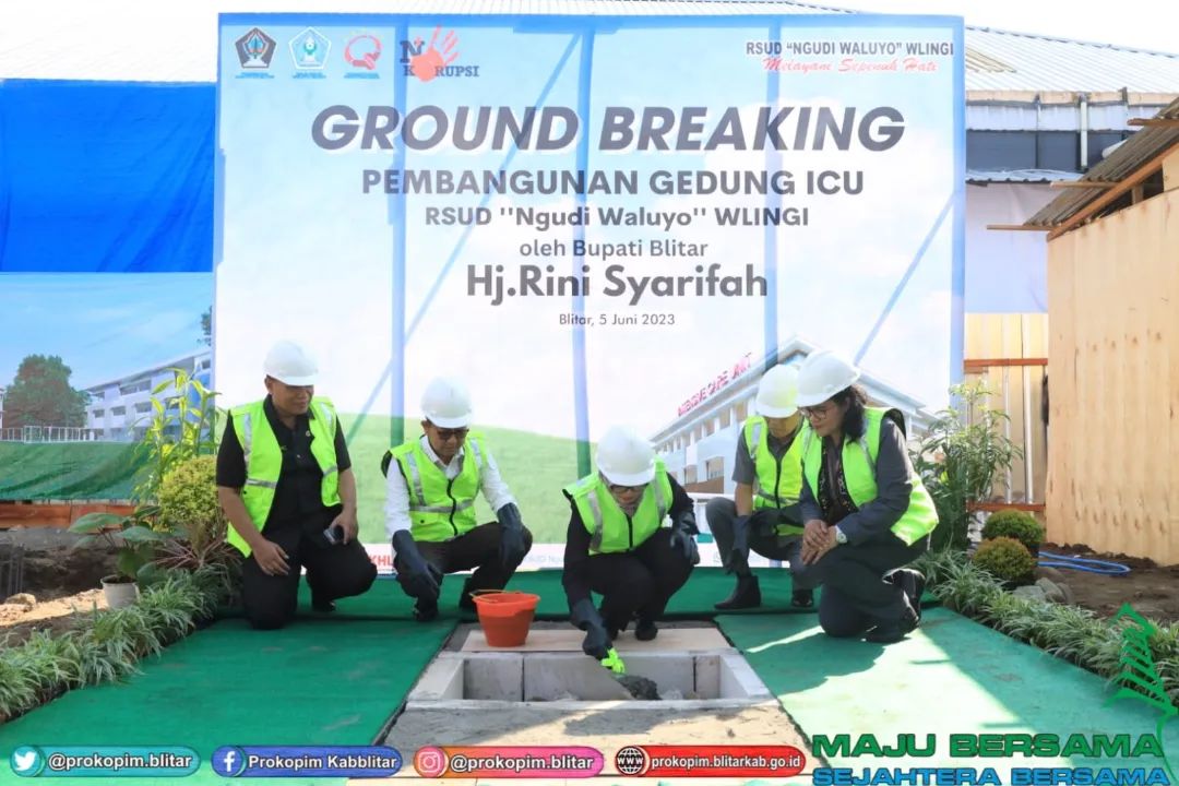 Dalam rangka meningkatkan kualitas layanan, RSUD Ngudi Waluyo Wlingi membangun Gedung Intensive Care Unit (ICU). Mulainya pembangunan yang ditandai dengan Groundbreaking ini dipimpin langsung Bupati Blitar, Hj. Rini Syarifah pada senin, 5 Juni 2023. Orang nomor satu di Kabupaten Blitar ini berharap Pembangunan Gedung ini sesuai rencana dan spesifikasi yang telah disusun. Menurutnya semua upaya ini dalam rangka meningkatkan derajat kesehatan masyarakat Kabupaten Blitar.