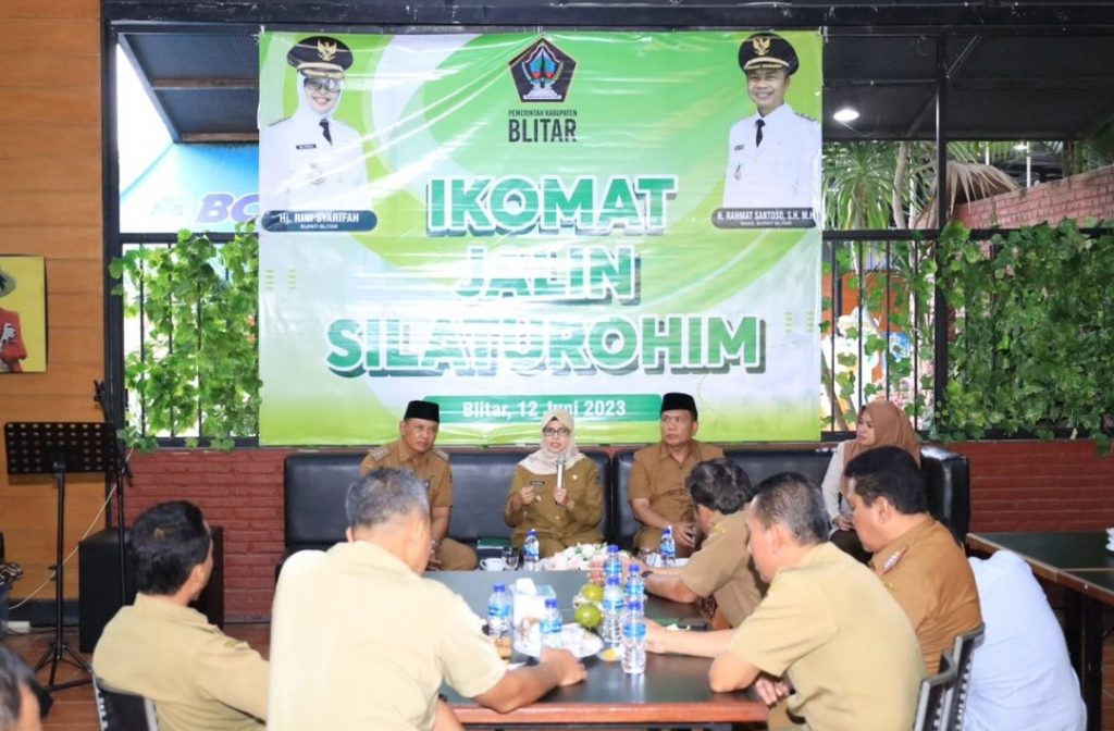 Bupati Blitar, Hj. Rini Syarifah membuka pertemuan rutin Ikatan Komunikasi Camat di Blitar Park. Kegiatan yang diikuti seluruh Camat Se-Kabupaten Blitar ini digelar pada Senin, 12 Juni 2023.