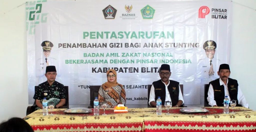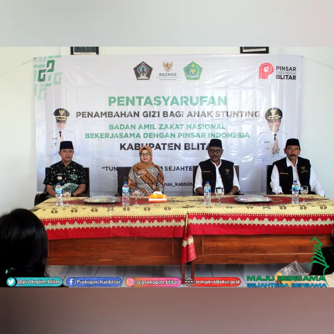 Bupati Blitar Hj. Rini Syarifah bersama Ketua Baznas (Badan Amil Zakat Nasional) Kabupaten Blitar melaksanakan pentasyarufan di Kecamatan Garum pada hari Kamis 22 Juni 2023. Dalam rangka menurunkan angka Stunting, Pentasyarufan Baznas kali ini berupa Telur yang akan diberikan rutin selama 6 (enam) bulan , guna Penambahan Gizi Bagi Anak.Bupati Blitar berpesan kepada seluruh penerima untuk memberikan konsumsi Telur kepada anak-anak sebanyak 2 kali sehari , agar gizi anak semakin tercukupi dan anak tetap sehat.