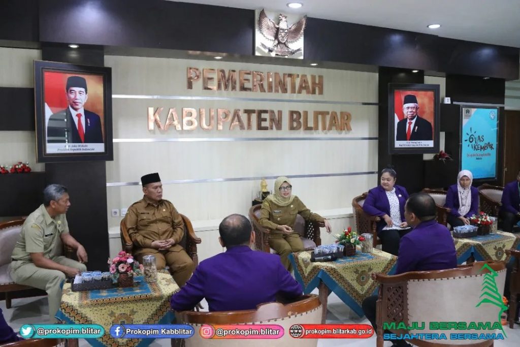 Bupati Blitar Hj. Rini Syarifah didampingi Sekretaris Daerah Kabupaten Blitar Drs. Izul Marom, M.Sc dan Kepala Dinas Peternakan dan Perikanan Kabupaten Blitar menerima audiensi dengan Pengurus Perhimpunan Dokter Hewan Indonesia (PDHI) Jatim VIII pada Senin, 26 Juni 2023 bertempat di ruang transit Kantor Bupati Blitar. Bupati Blitar mengapresiasi dukungan dari PHDI Jatim VIII dalam rangka membantu pengawasan pada pemotongan hewan qurban saat Hari Raya Idul Adha 1444 H. Mak Rini berharap sinergitas dan kolaborasi dengan Pemerintah Kabupaten Blitar tetap terjaga dengan baik.