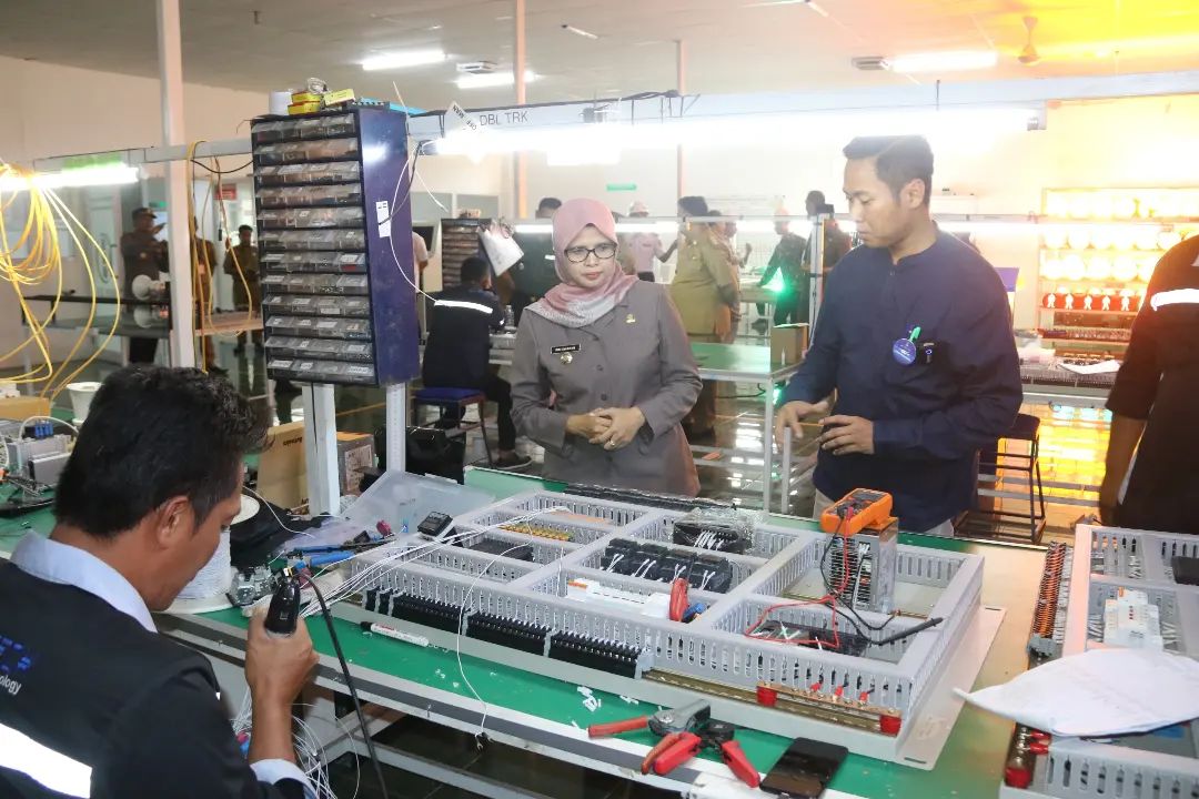 Bupati Blitar Hj. Rini Syarifah bersama dengan Kepala OPD meninjau Wantech Indonesia di Kecamatan Gandusari pada Senin, 26 Juni 2023. Wantech Indonesia merupakan perusahaan yang bergerak di bidang penyedia dan produsen fasilitas keselamatan jalan dan perlintasan Kereta Api.