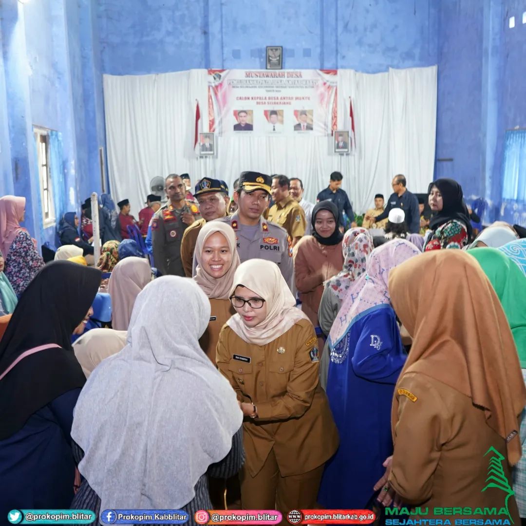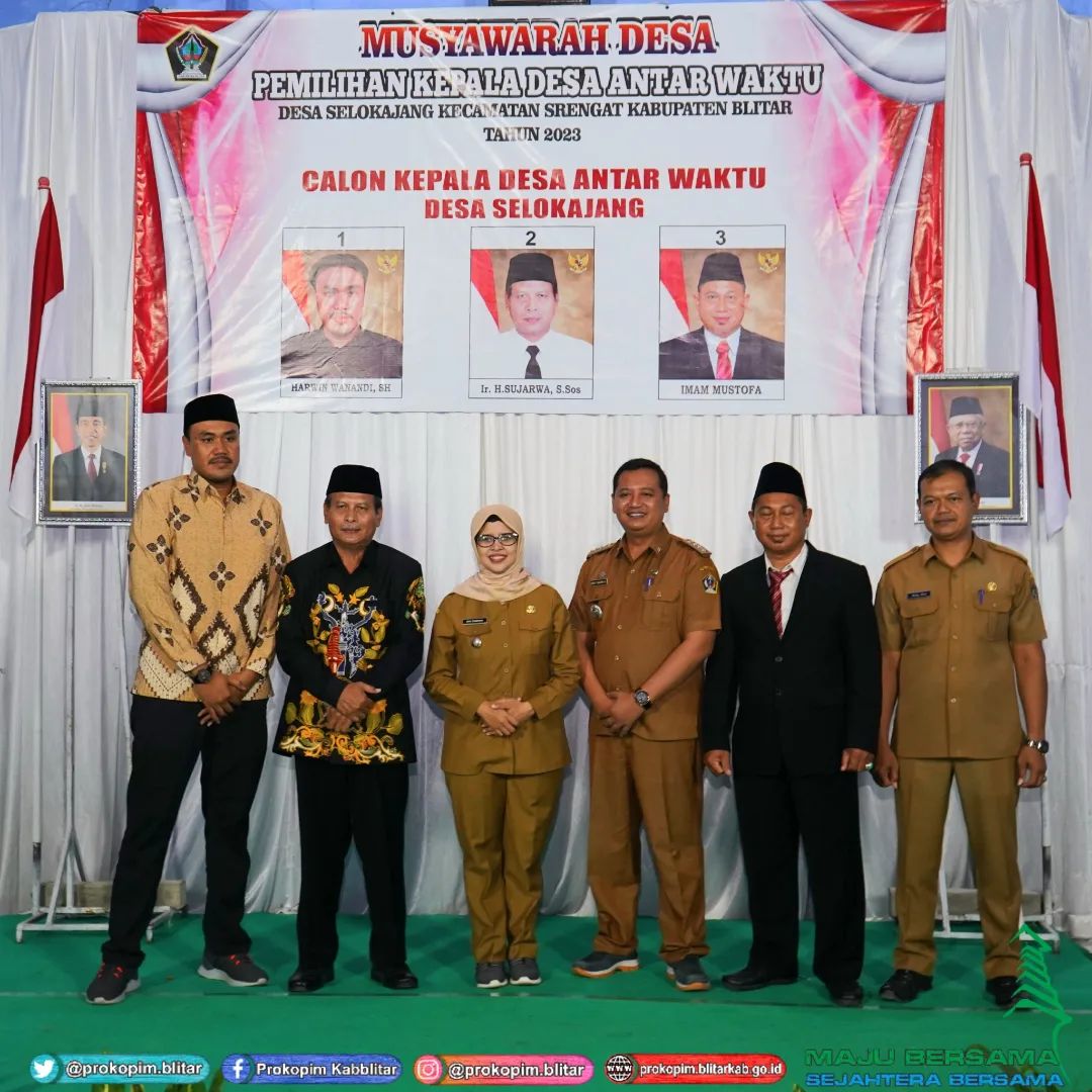 Bupati Blitar Hj. Rini Syarifah bersama Sekretaris Daerah Kabupaten Blitar Drs. Izul Marom, M.Sc meninjau Pelaksanaan Pilkades Antar Waktu di Kantor Desa Selokajang Kecamatan Srengat, Selasa 27 Juni 2023. Bupati Blitar mengapresiasi antusias warga Desa Selokajang yang hadir, seraya berharap sinergitas antara Desa dan Pemerintah Kabupaten Blitar selalu berjalan dengan baik, untuk membangun Kabupaten Blitar agar lebih maju dan sejahtera.