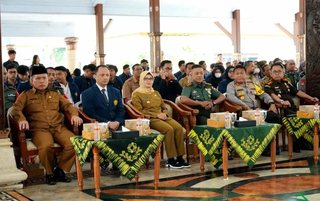 Bupati Blitar Hj. Rini Syarifah bersama Kapolres Kota Blitar, Dandim 0808, Kepala Kejaksaan, Sekretaris Daerah Kabupaten Blitar, dan OPD, menyambut Mahasiswa dari Universitas Unibraw Malang yang akan melaksanakan kegiatan MMD (Mahasiswa Membangun Desa) di wilayah Kabupaten Blitar, di Pendopo Ronggo Hadinegoro, Senin 3 Juli 2023.