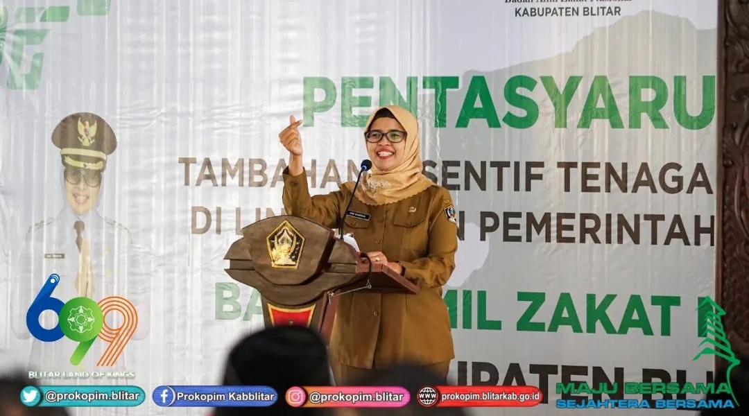 Hal ini disampaikan dalam kegiatan pentasyarufan Baznas kepada THL Kabupaten Blitar yang menerima tambahan intensif pada hari Selasa 18 Juli 2023 di Pendopo Agung Ronggo Hadinegoro.