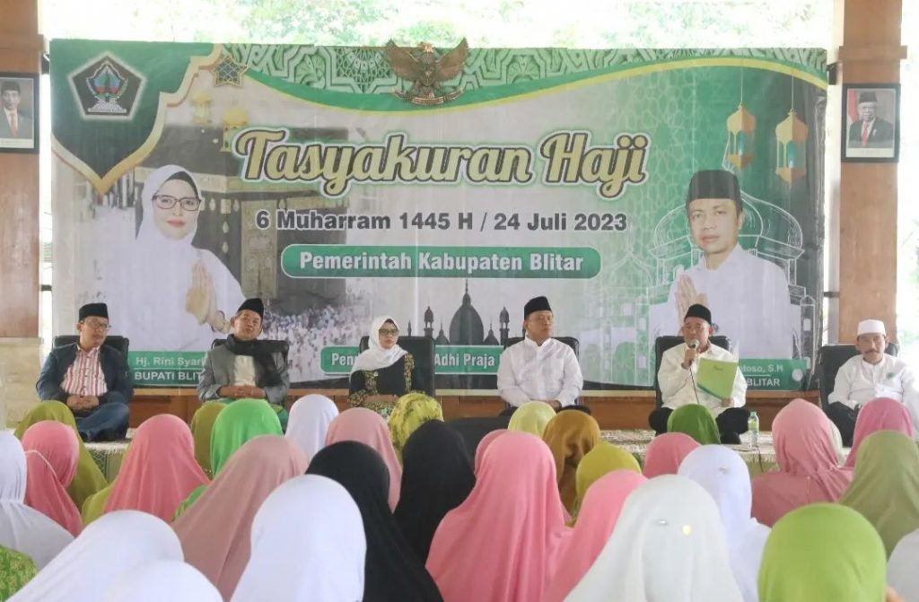 Bupati Blitar Hj. Rini Syarifah menghadiri acara Tasyakuran Haji Tahun 2023 di Pendopo Sasana Adi Praja pada Senin, 24 Juli 2023. Mak Rini mengajak semua jamaah untuk mendoakan jamaah Haji dari Blitar yang meninggal saat menjalankan ibadah haji di tanah suci. Pada acara tasyakuran ini juga diberikan kartu anggota IPHI Kabupaten Blitar secara simbolis oleh Bupati Blitar.