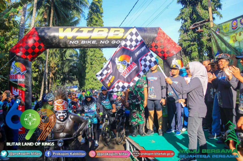 Bupati Blitar Hj. Rini Syarifah memberangkatkan 2000 peserta Fun Bike dalam rangka Sosialisasi Pemberantasan Rokok Ilegal dan peringatan Hari Jadi Blitar ke-699 pada hari Minggu 30 Juli 2023 di Lapangan Sepak Bola Desa Sumberasri, Kecamatan Nglegok.