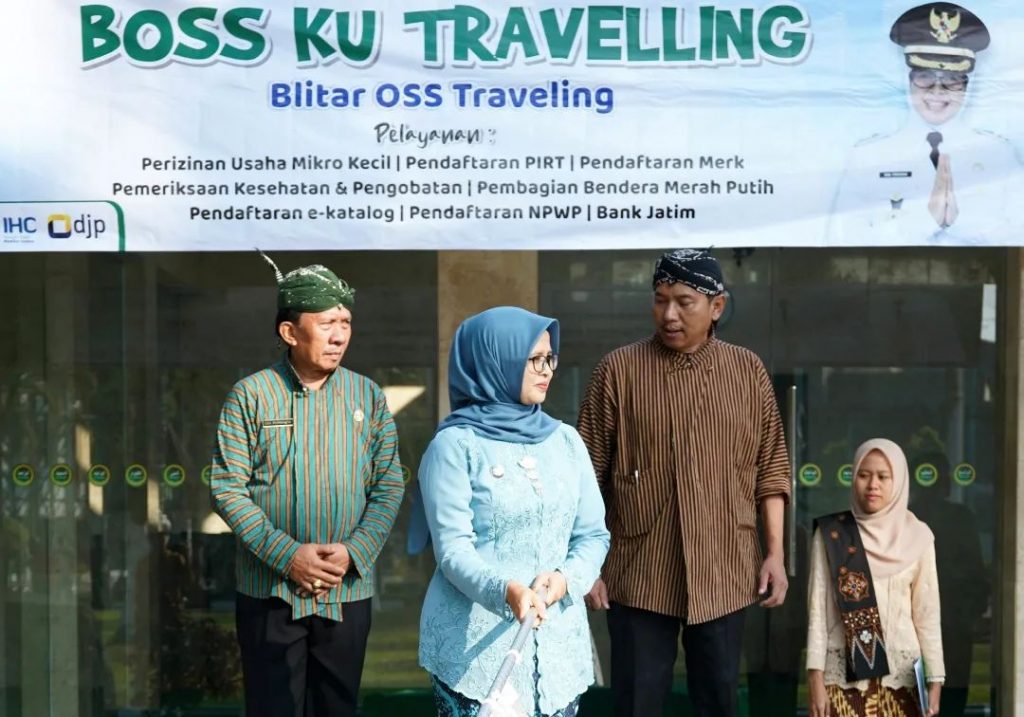 BOSS KU TRAVELING (Blitar Online Single Submission) Kemudahan pelayanan terpadU Traveling ke Destinasi Wisata Unggulan Kabupaten Blitar) dan BOSS KU PINTAR (Blitar Online Single Submission) merupakan salah satu inovasi dari DPMTPSP guna mempercepat dan memberikan kemudahan layanan bagi masyarakat dan pelaku usaha secara gratis. Program tersebut dilaksanakan bertepatan dengan momentum Hari Jadi Blitar yang ke 699 dan HUT Proklamasi Kemerdekaan RI ke-78 Tahun 2023. Kegiatan itu sekaligus untuk mensosialisasikan perizinan berusaha, peningkatan kualitas produk, permodalan dan pemasaran serta peningkatan kualitas kesehatan pelaku usaha dan masyarakat di sekitar destinasi wisata. Hal itu disampaikan oleh Bupati Blitar Hj. Rini Syarifah sebelum memberangkatkan Tim BOOS KU Traveling di Pendopo Ronggo Hadinegoro, Selasa 1 Agustus 2023.