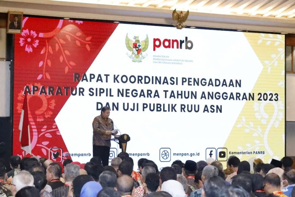 Acara Rapat Koordinasi Pengadaan ASN Tahun Anggaran 2023 dan Uji Publik RUU ASN ini dibuka oleh Menko Bidang Perekonomian Republik Indonesia Airlangga Hartarto. Pada sambutannya Airlangga menyampaikan rekruitmen calon ASN harus diputuskan dengan mempertimbangkan tenaga non – ASN yang memenuhi syarat untuk mengisi posisi yang dibutuhkan oleh instansi pemerintah selain itu penyederhanaan birokrasi harus segera dilaksanakan untuk mempermudah pelayanan terhadap masyarakat.