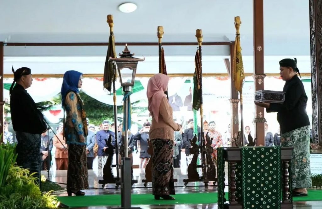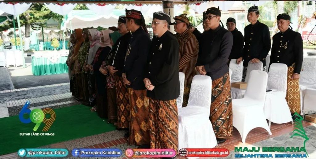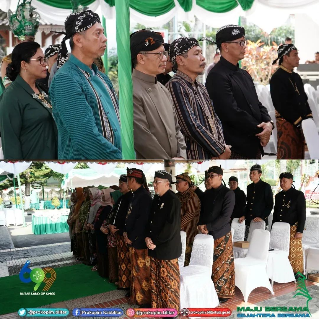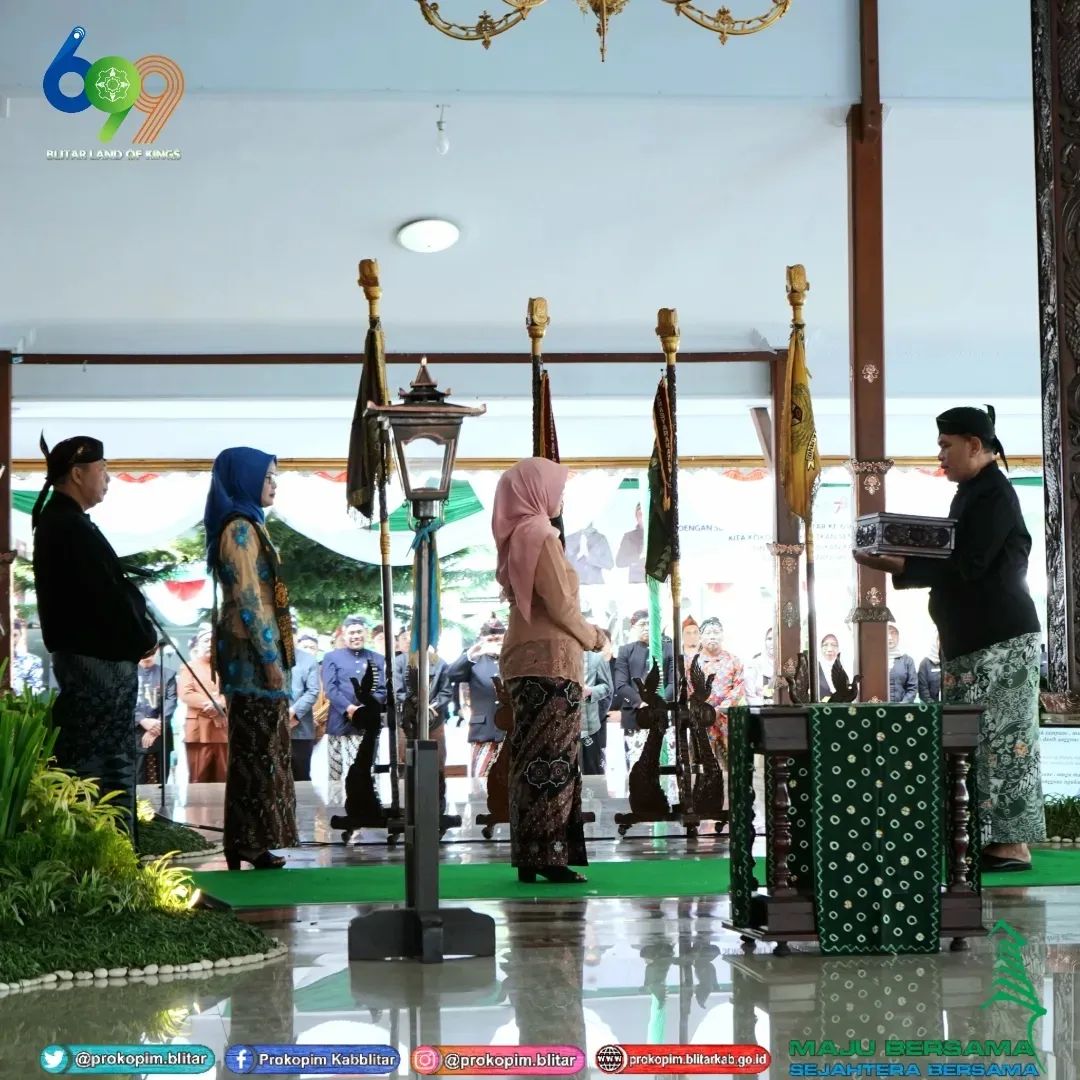 Bupati Blitar Hj. Rini Syarifah menghadiri pelaksanaan Bedol Pusoko yang merupakan salah satu rangkaian kegiatan Peringatan Hari Jadi Blitar ke-699 di Pendopo Ronggo Hadinegoro, Jumat 4 Agustus 2023. Pada Upacara Bedol Pusoko ini dilaksanakan penyerahan Serat Kekancingan sejarah Blitar dan Panji Lambang Daerah oleh Sekretaris Daerah Kabupaten Blitar Drs. Izul Marom, M.Sc