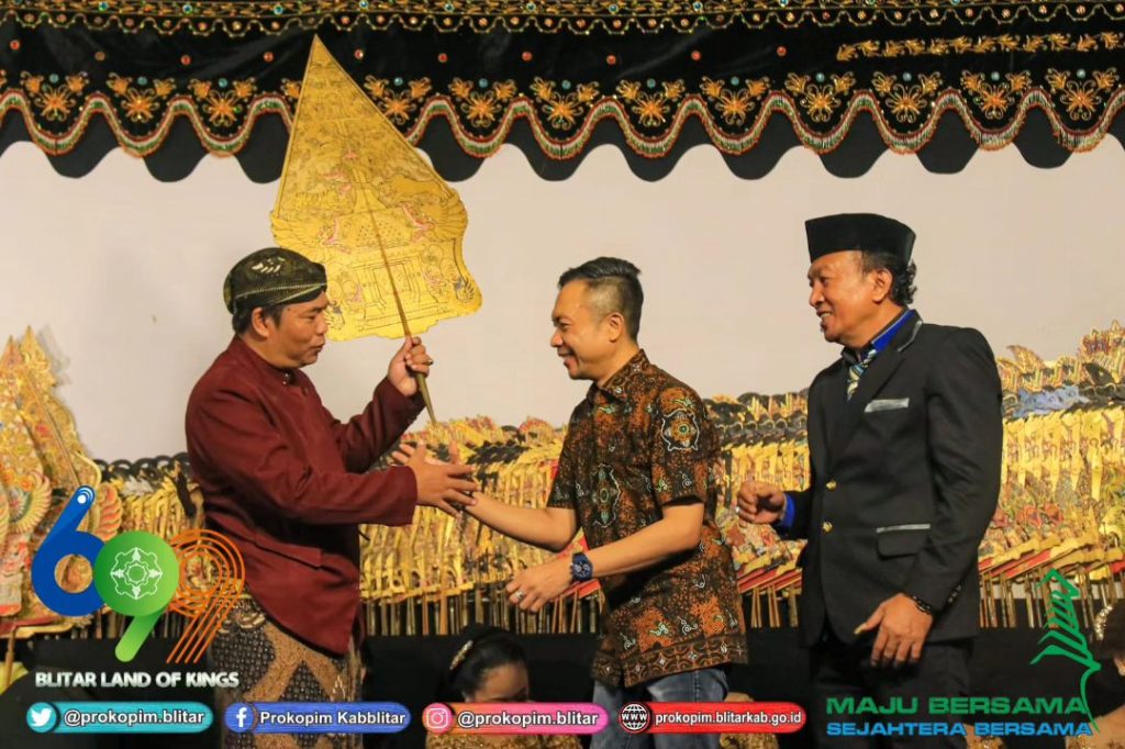 Wakil Bupati Blitar H. Rahmat Santoso menghadiri dan membuka Pagelaran Wayang Kulit semalam suntuk dengan Dalang Ki Eko Kondho Prisdianto dan Bintang Tamu Cak Comet CS di Lapangan Desa Olak Alen Kecamatan Selorejo pada hari Minggu 6 Agustus 2023.