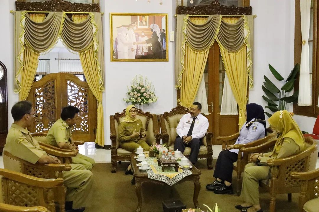 Bupati Blitar Hj. Rini Syarifah menerima kunjungan Kepala Lapas II B Blitar Gatot Tri Raharjo di Pendopo Ronggo Hadinegoro pada Senin, 7 Agustus 2023. Kalapas II B Blitar Gatot Tri Raharjo, SH menyampaikan kunjungan ini dalam rangka silaturahmi dengan Bupati Blitar dan menyampaikan program kegiatan yang ada di Lapas II B Blitar.