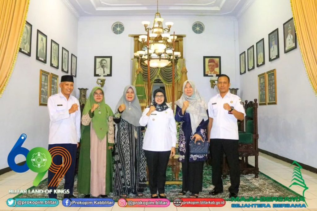 Bupati Blitar Hj. Rini Syarifah didampingi Kepala Bagian Umum dan Kepala Bagian Kesra menerima kunjungan Ibu Nyai Yasin pada hari Rabu 9 Agustus 2023 di Pendopo Agung Ronggo Hadinegoro. Dalam pertemuan tersebut Ibu Nyai Yasin menyampaikan rencana kegiatan Istigosah dengan jumlah jamaah putri 300 orang yang akan dilaksanakan pada tanggal 9 September 2023 di Pendopo Agung Ronggo Hadinegoro. Mak Rini sapaan akrab Bupati Blitar berharap penyelenggaraan Istighosah bisa berjalan dengan lancar dan membawa berkah bagi maysarakat Kabupaten Blitar.