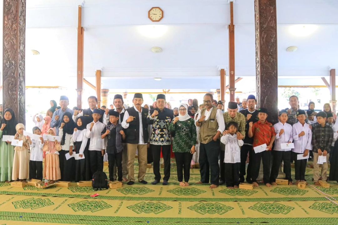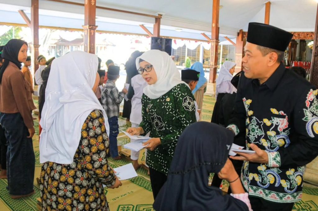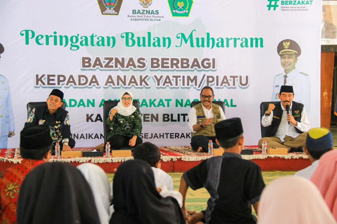 Bupati Blitar Hj. Rini Syarifah didampingi Ketua Badan Amil Zakat Nasional (Baznas) Kabupaten Blitar Akhmad Husain dan Ketua Dekranasda Kabupaten Blitar H. Zainal Arifin, mentasyarufkan bantuan kepada anak yatim/piatu pada hari Jumat 11 Agustus 2023 di Pendopo Agung Ronggo Hadinegoro.
