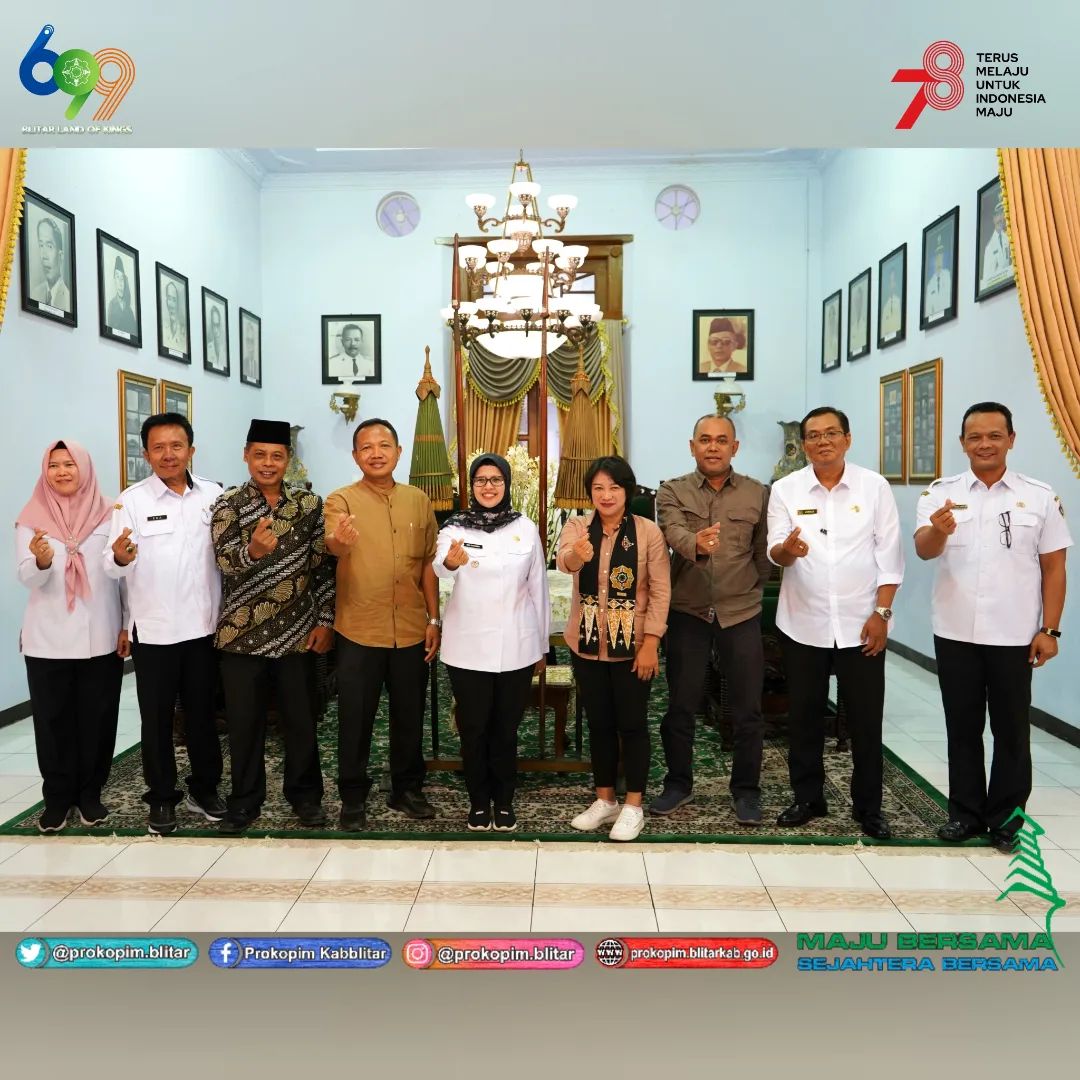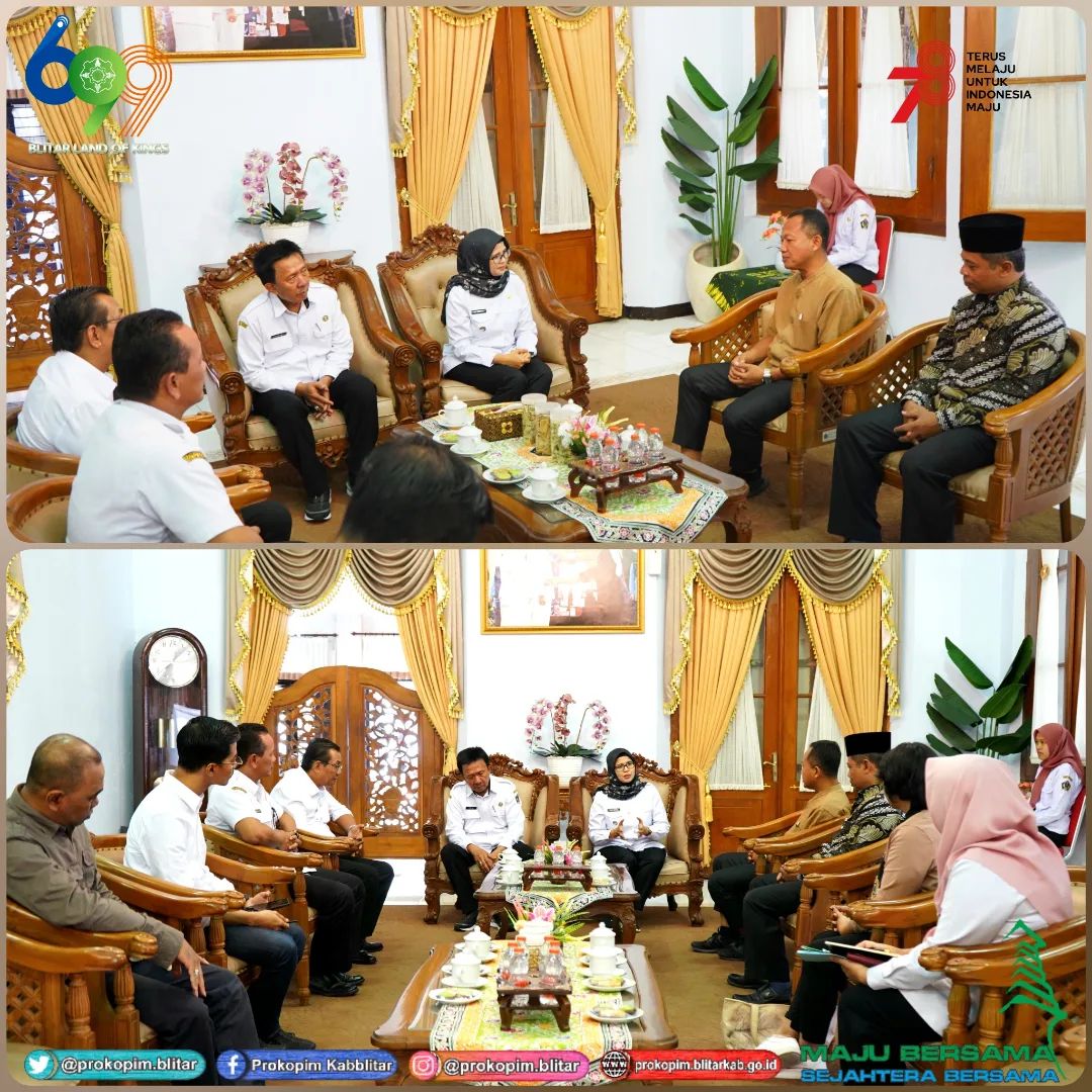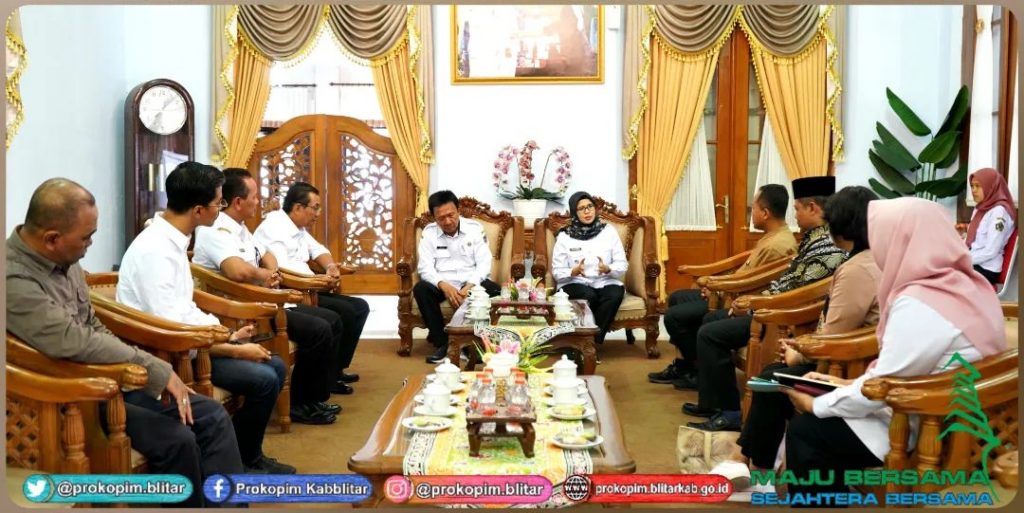 Bupati Blitar Hj. Rini Syarifah melaksanakan audiensi dengan perwakilan forum TJSL, antara lain ; PT Jatinom Indah, PT Kampung Coklat, PT Pertamina Patra Niaga Regional Jatimbalinus, dan PT Blitar Park di Pendopo Ronggo Hadinegoro, Rabu, 24 Agustus 2023.