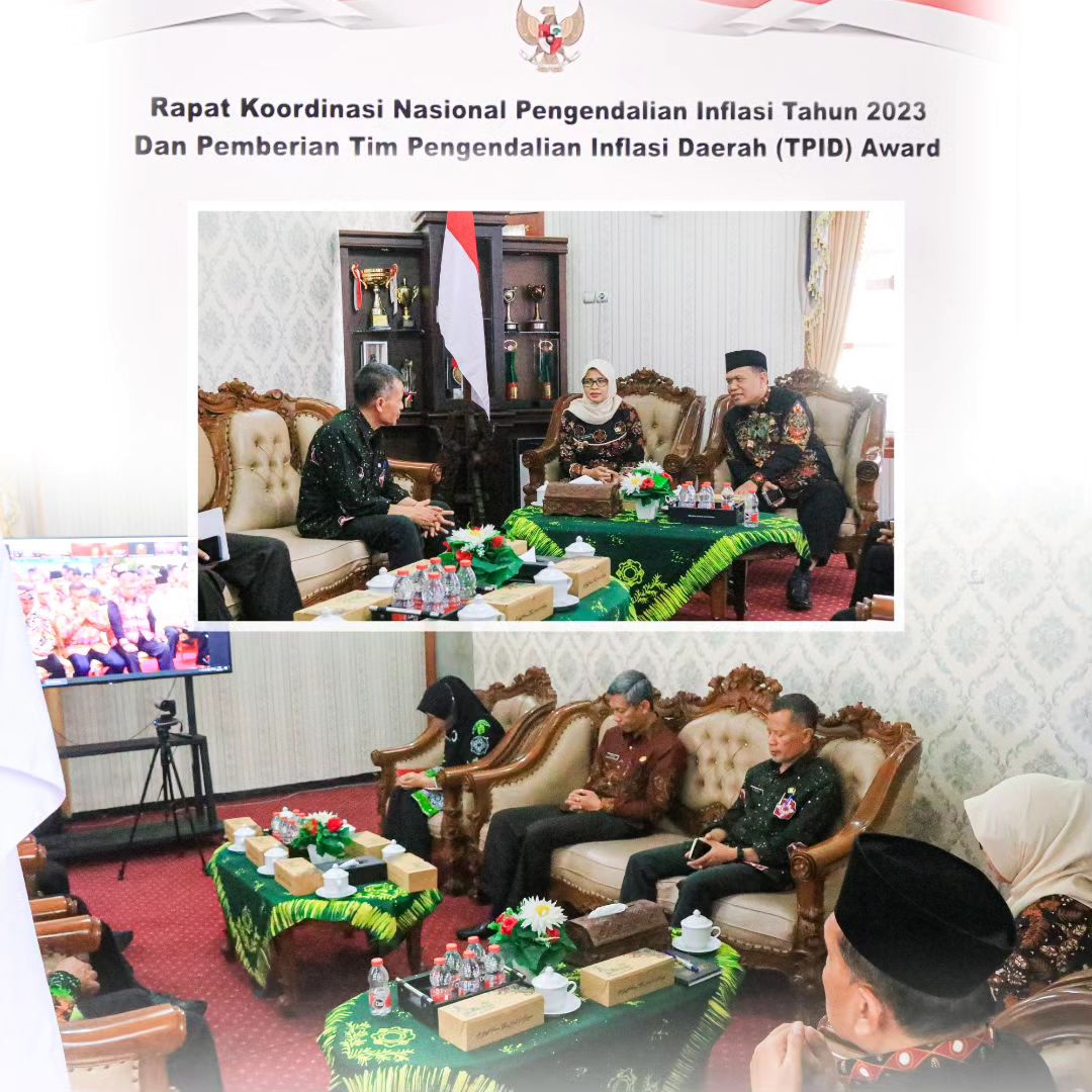 Bupati Blitar Hj. Rini Syarifah hadiri Rapat Koordinasi Nasional (Rakornas) Pengendalian Inflasi Tahun 2023 dan Pemberian Tim Pengendali Inflasi Daerah (TPID) Award Tahun 2022 secara zoom meeting di Pendopo Agung Ronggo Hadinegoro pada Hari Kamis 31 Agustus 2023.