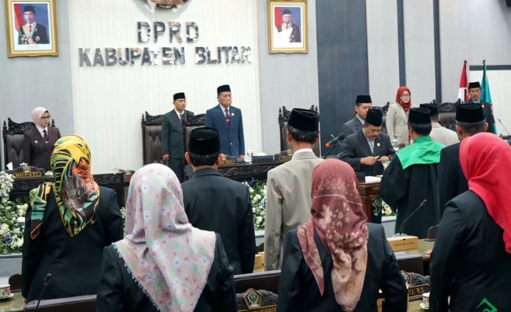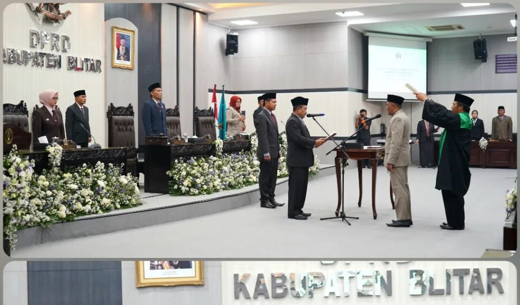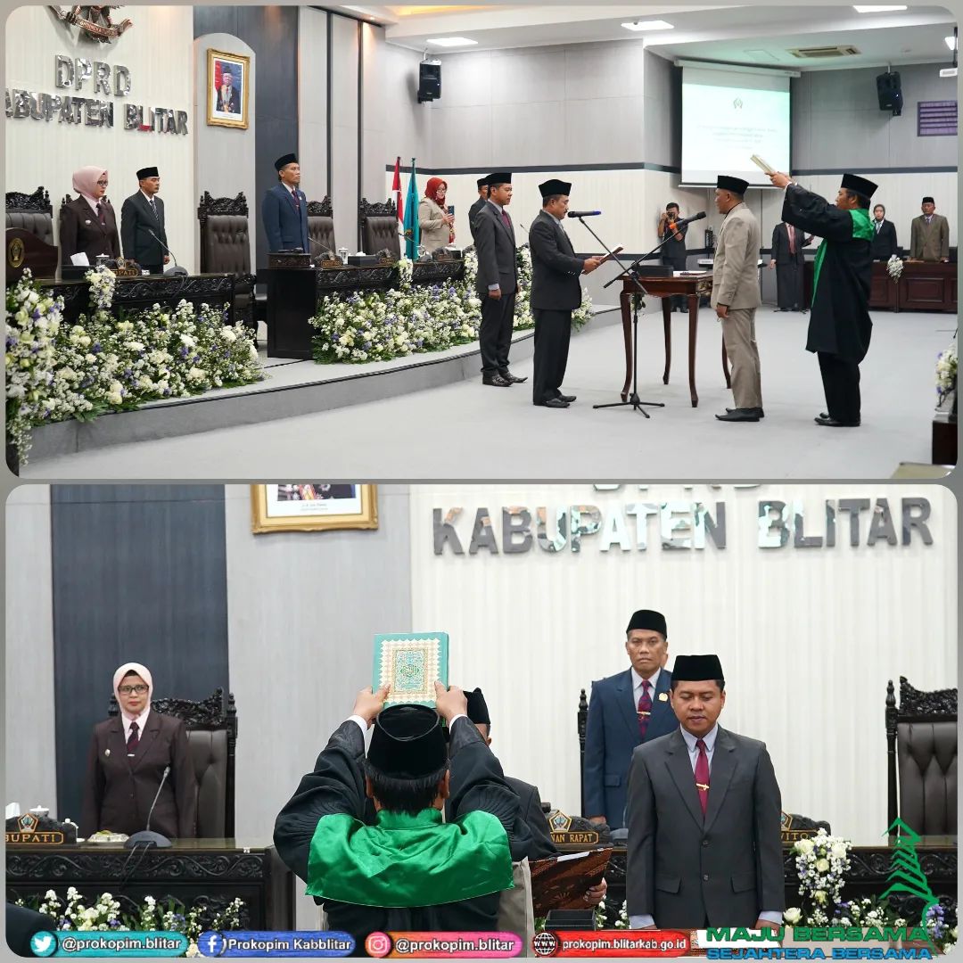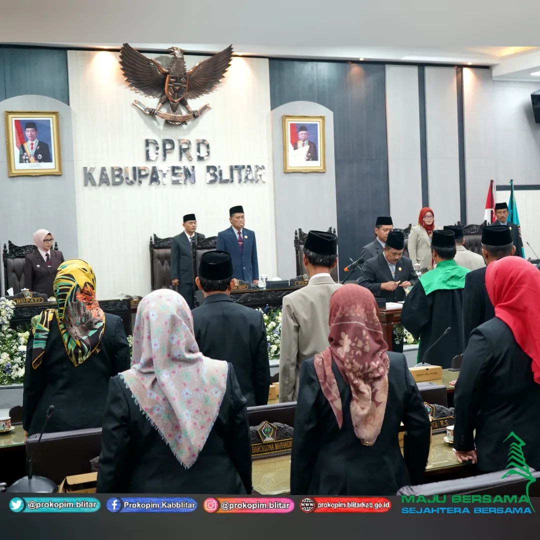 Bupati Blitar Hj. Rini Syarifah menghadiri Rapat Paripurna DPRD Kabupaten Blitar, dalam rangka Pengambilan Sumpah Janji Pengganti Antar Waktu (PAW) Anggota DPRD Kabupaten Blitar Sisa Masa Jabatan 2019 – 2024, di Gedung Graha DPRD, Senin 4 September 2023.