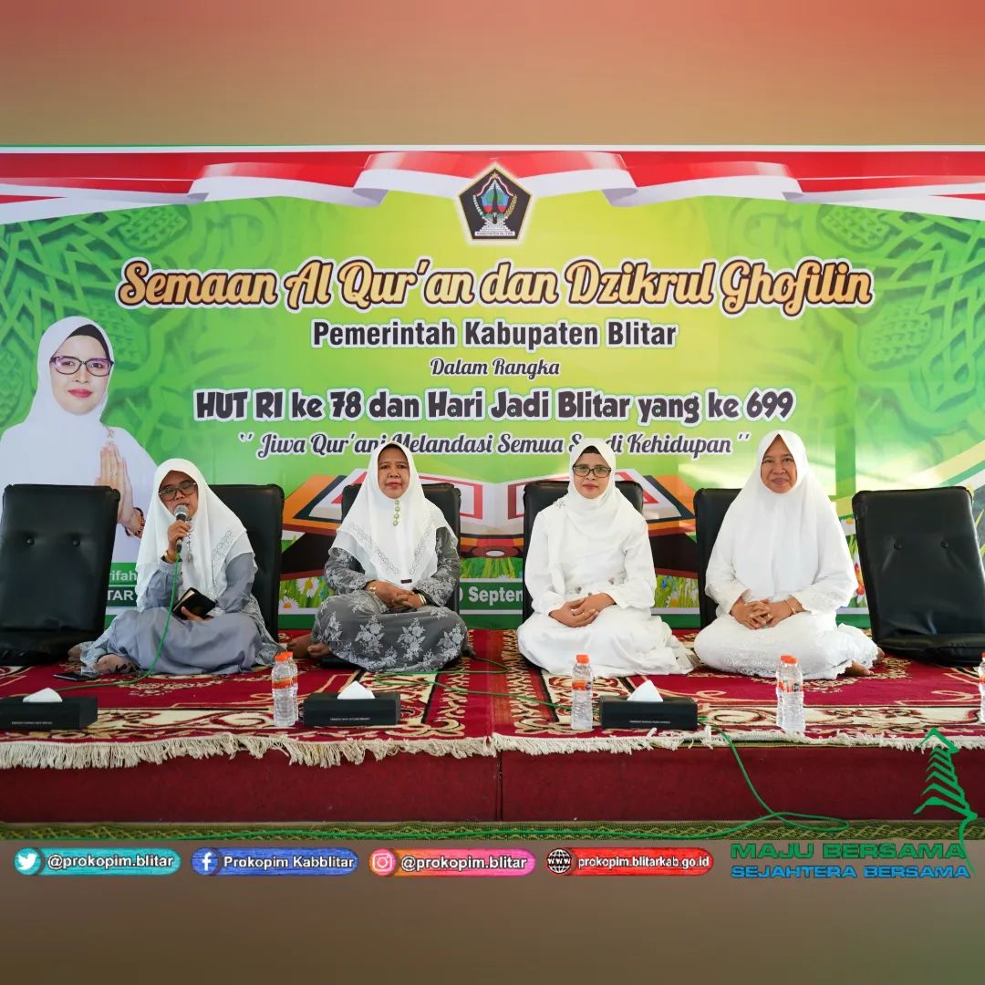 Bupati Blitar Hj. Rini Syarifah menghadiri kegiatan Sema’an Al Quran Dan Dzikrul Ghofilin yang diselenggarakan di Pendopo Ronggo Hadinegoro Sabtu, 9 September 2023 mengambil tema “Jiwa Qur’ani Melandasi Semua Sendi Kehidupan”. Semaan Al Qur’an dan Dzikrul Ghofilin dilaksanakan dalam rangka peringatan HUT Kemerdekaan RI ke 78 dan Hari Jadi Blitar ke 699. Acara ini diikuti oleh jamaah dari berbagai penjuru Blitar.
