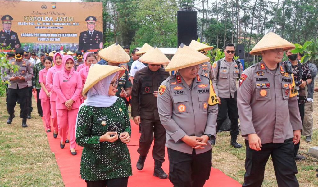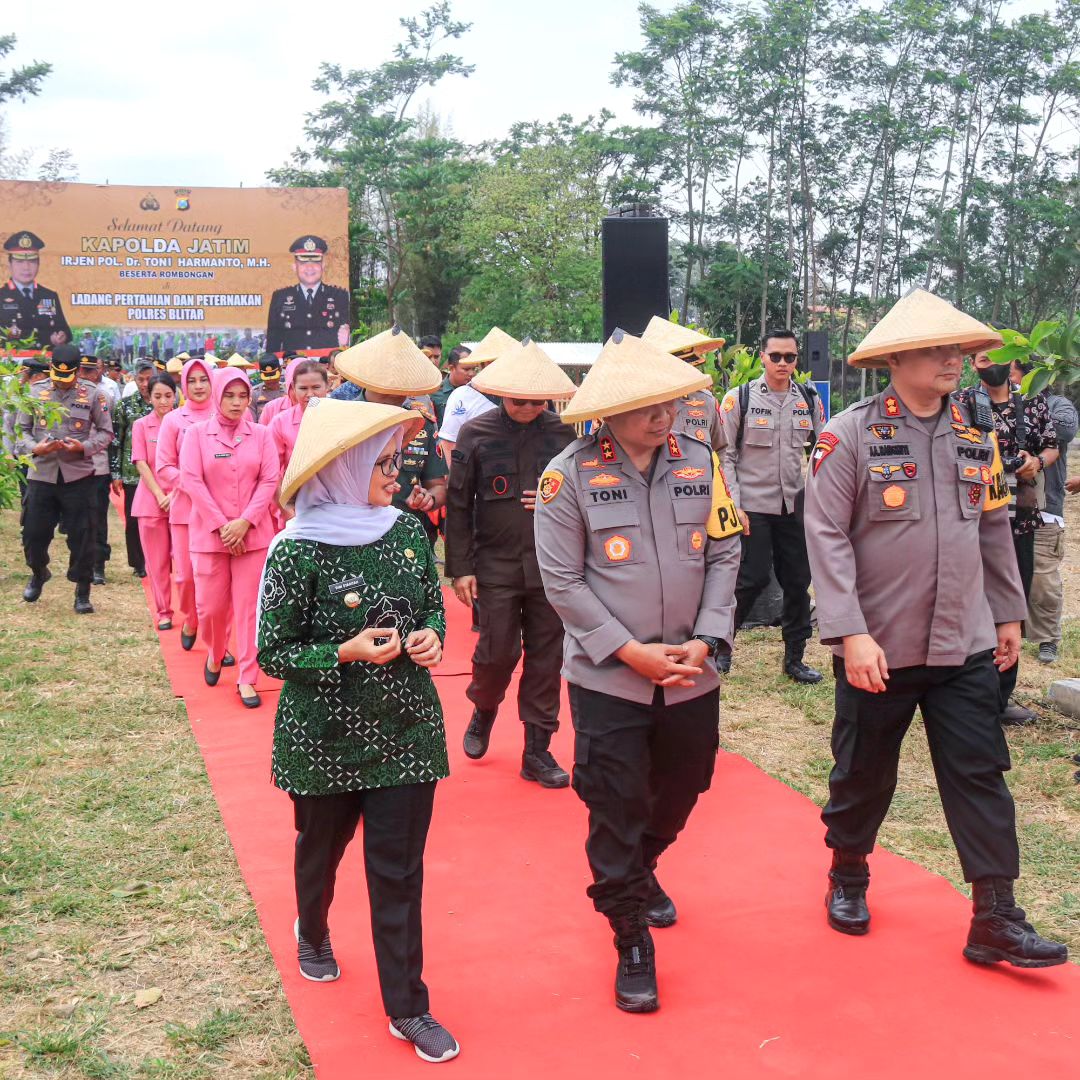 Setelah acara penyambutan dan sesi foto bersama, Bupati Blitar mendampingi Kapolda Jawa Timur menuju lahan pertanian Polres Blitar dengan agenda penanaman benih jagung dilanjutkan peninjauan dan pelepasan bibit ikan lele.