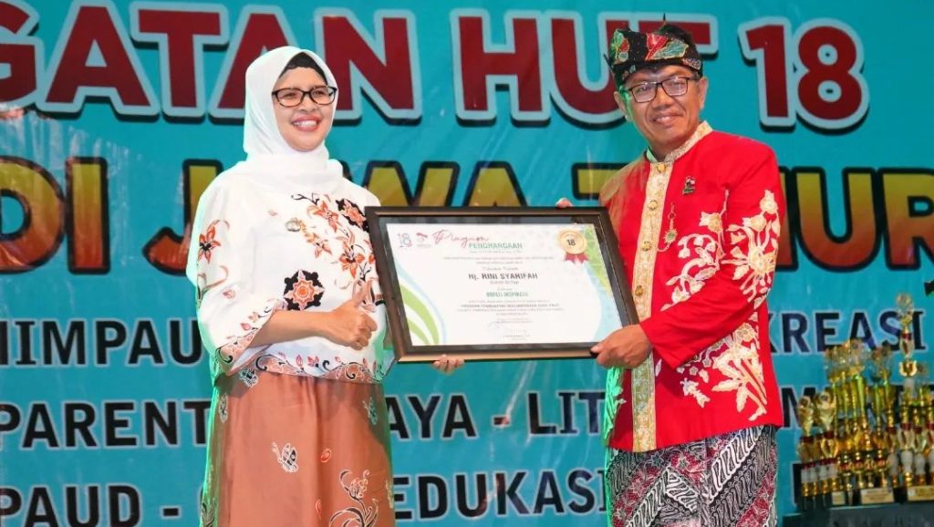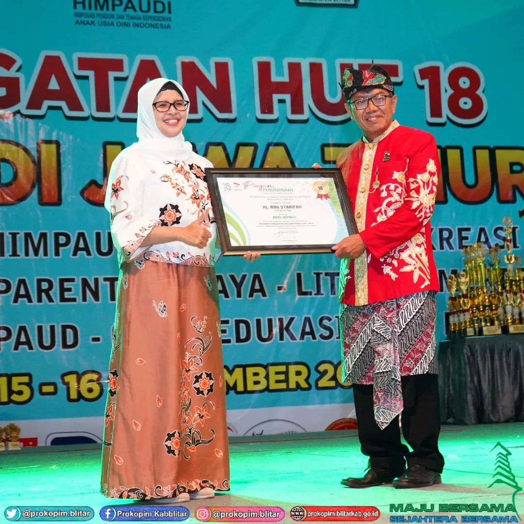 Bupati Blitar Hj. Rini Syarifah menerima penghargaan dari HIMPAUDI Provinsi Jawa Timur, atas Peran komitmen serta Kepeduliannya melalui Program Peningkatan Kesejahteraan Guru Paud (Inisiatif Pemberian Kebijakan Insentif Bagi Guru Paud Non Formal) di Kabupaten Blitar. Penghargaan tersebut diserahkan pada acara Peringatan HUT ke-18 HIMPAUDI Jawa Timur, yang diselenggarakan di Alun-alun Kota Blitar, pada hari Jumat 15 September 2023.
