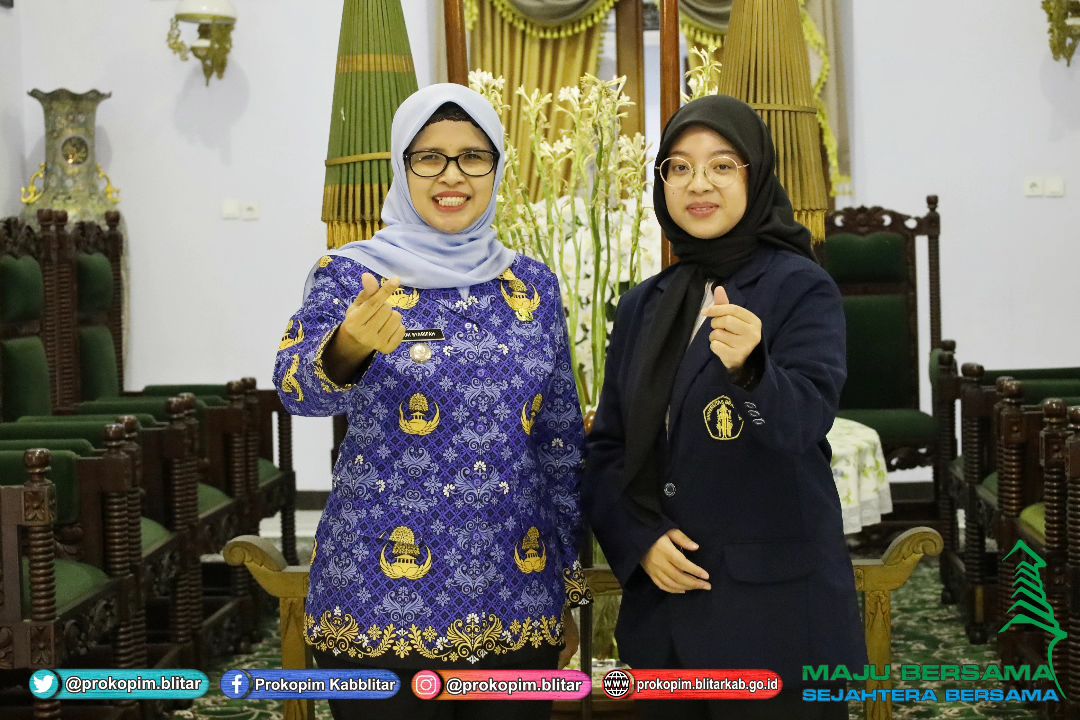 Bupati Blitar Hj. Rini Syarifah menerima kunjungan mahasiswa dari Universitas Brawijaya Malang bertempat di Pendopo Ronggo Hadinegoro pada Senin, 18 September 2023. Kunjungan ini dalam rangka wawancara kepada Bupati perempuan pertama di Kabupaten Blitar untuk pemenuhan tugas skripsi dengan mengambil isu gender di Kabupaten Blitar.